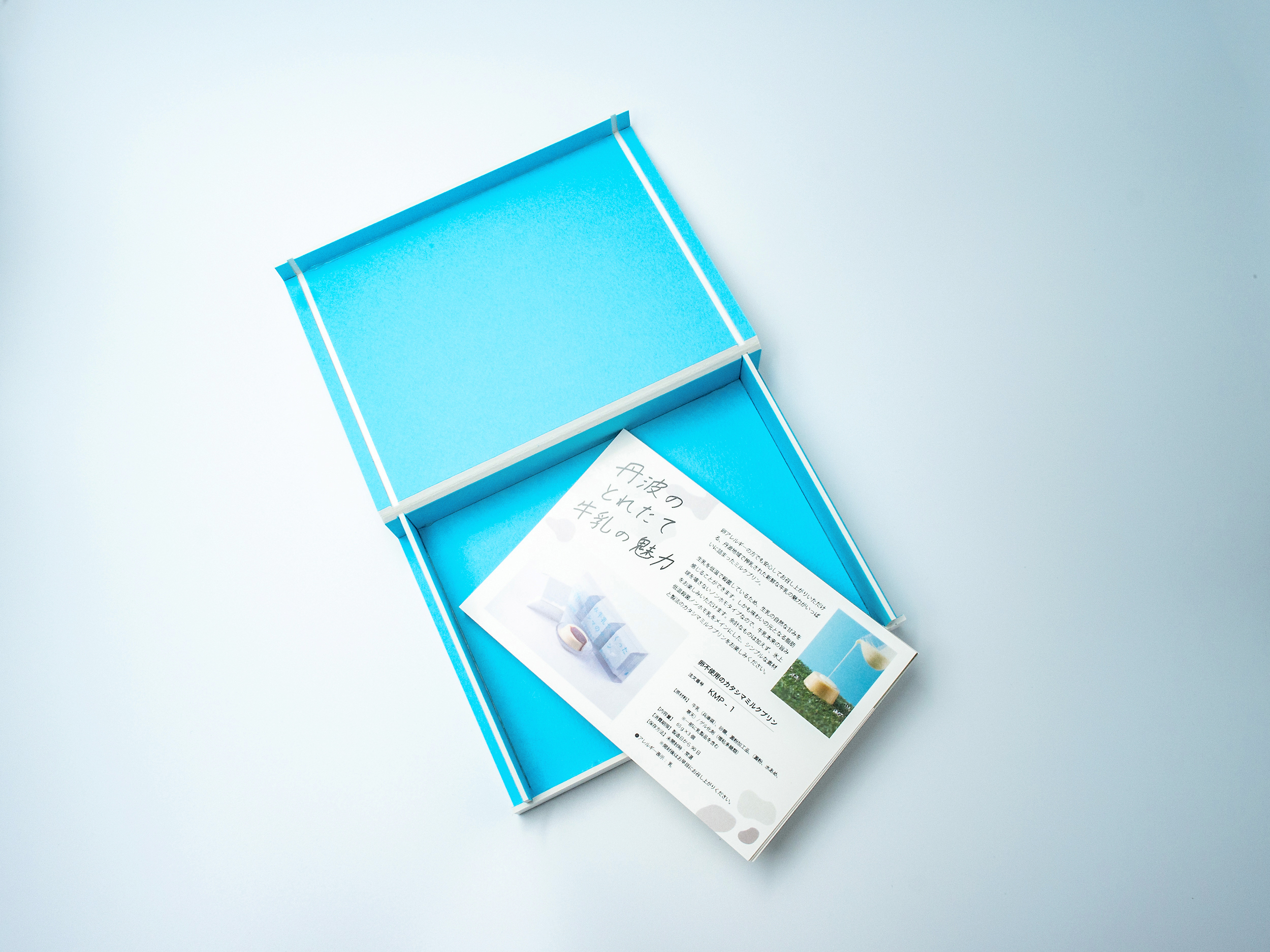 福知山ゆかりの武将、明智光秀にちなんだ水色が特徴的な特別感のある オリジナル化粧箱の中に封入されている、生活用品・スイーツ・食品・アクティビティが18枚のポストカード型の商品カタログから、お好きな商品を同封のハガキでお申込いただくことができます。