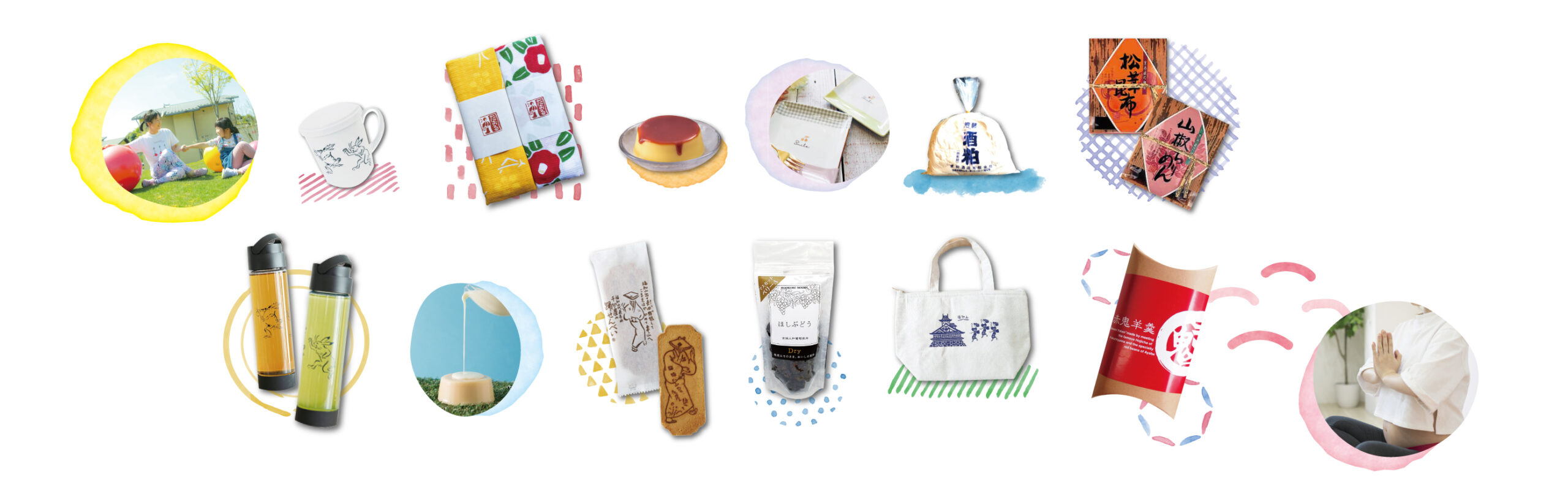 従来のカタログギフトは、手軽に贈れる分「いつも同じものから選びがち」だったり「いまいち贈る側も贈られる側も気持ちが伝わりにくいといったモヤモヤがありました。「もっと作り手の温度感を感じられたら」そんな想いから、地元福知山のお店さんにご協力をいただき完成したのが地元発信型のギフトカタログ「ふくさん」です。いわゆる名産品ではない、その土地で愛されている商品、実はお店ではこれが人気なんですよという隠れた自慢の商品を各店舗のストーリーと共に知っていただける「旅するような」カタログになっています。